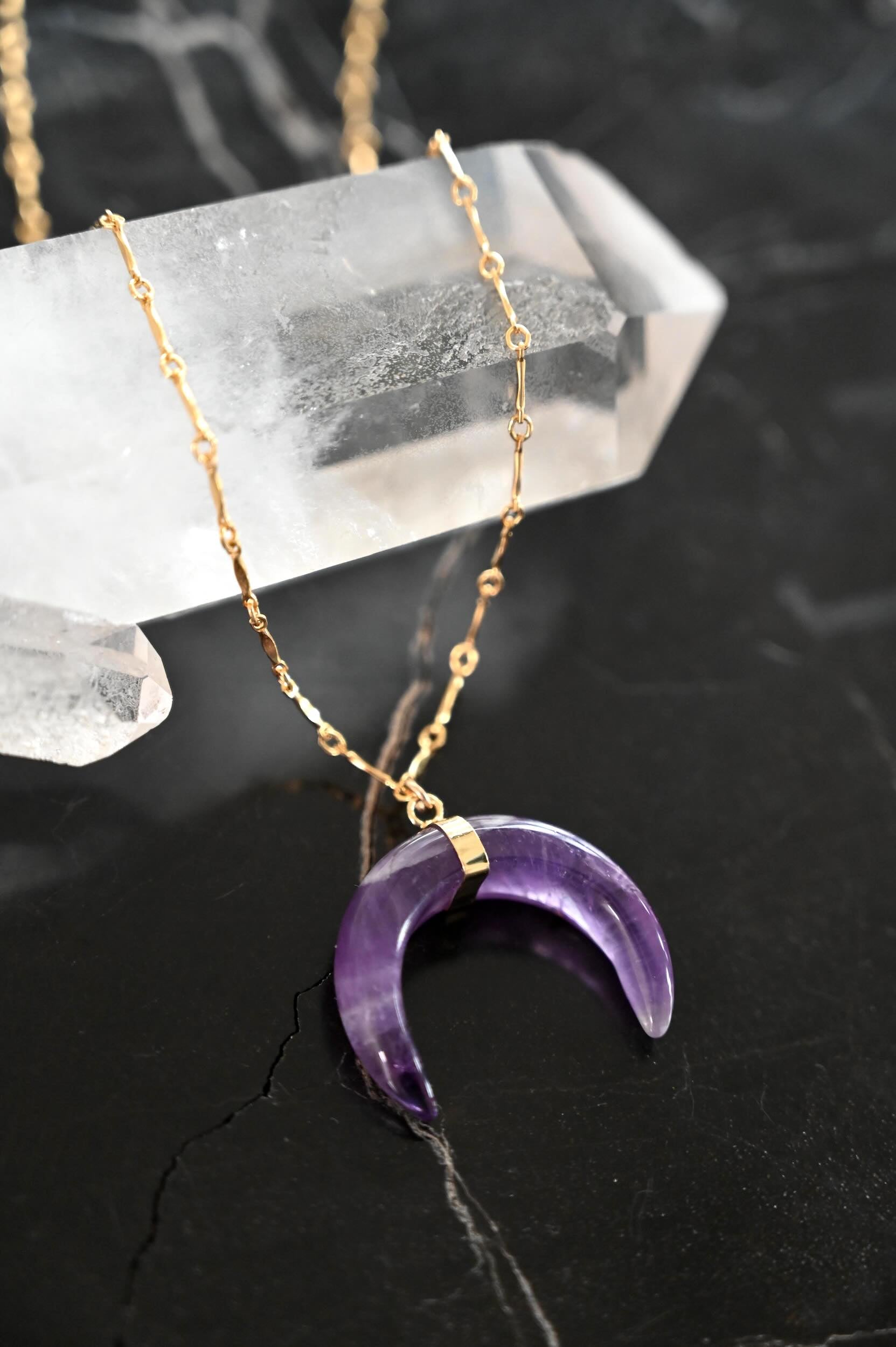 This amethyst horn necklace is your reminder to trust your intuition and let your inner light guide the way. Wear it as your grounding talisman through every season of growth.