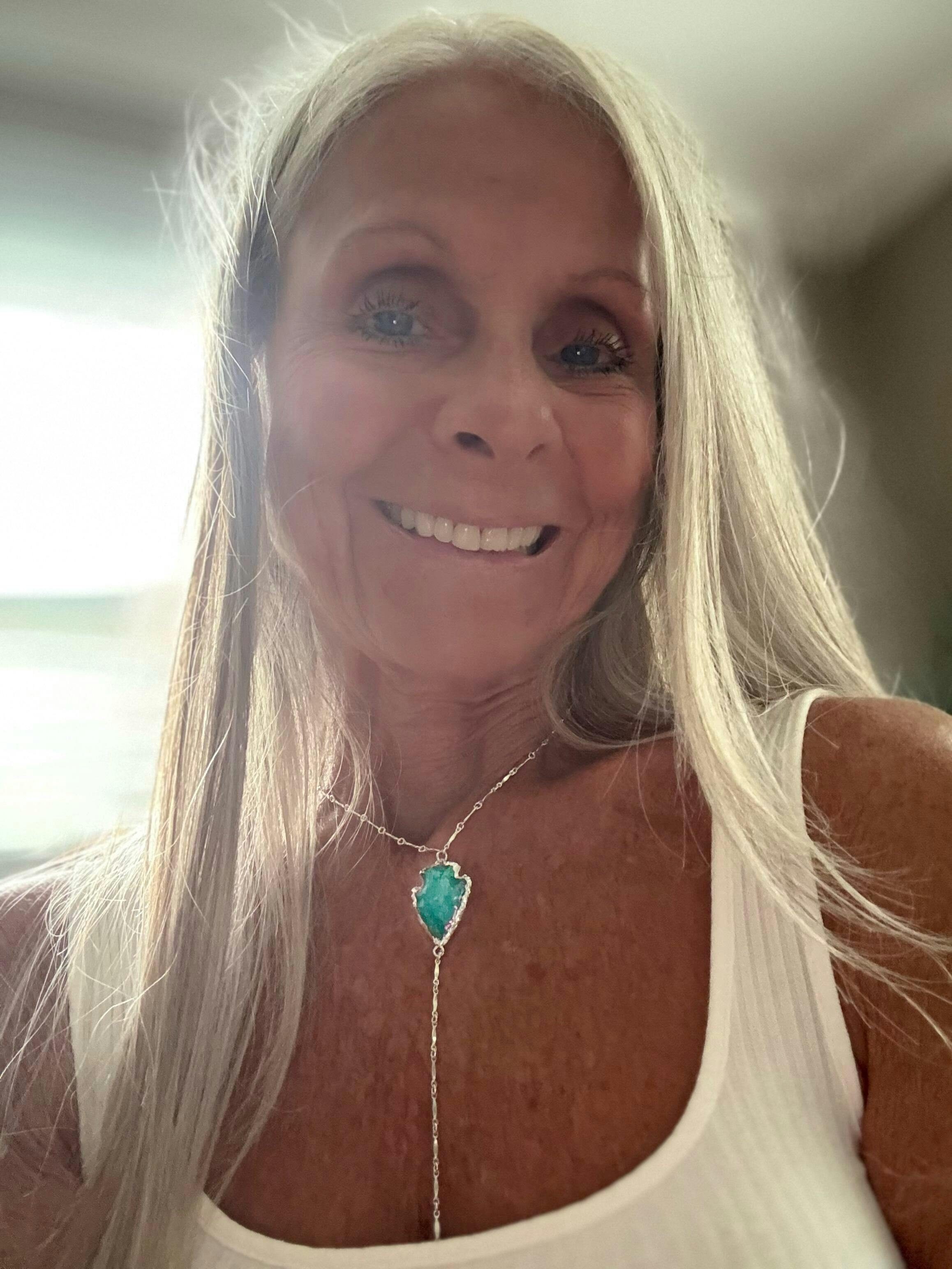 This iridescent, striking Aura Quartz necklace is bold and vibing. It's for the woman who isn't afraid to be fierce and express yourself in your highest frequency!