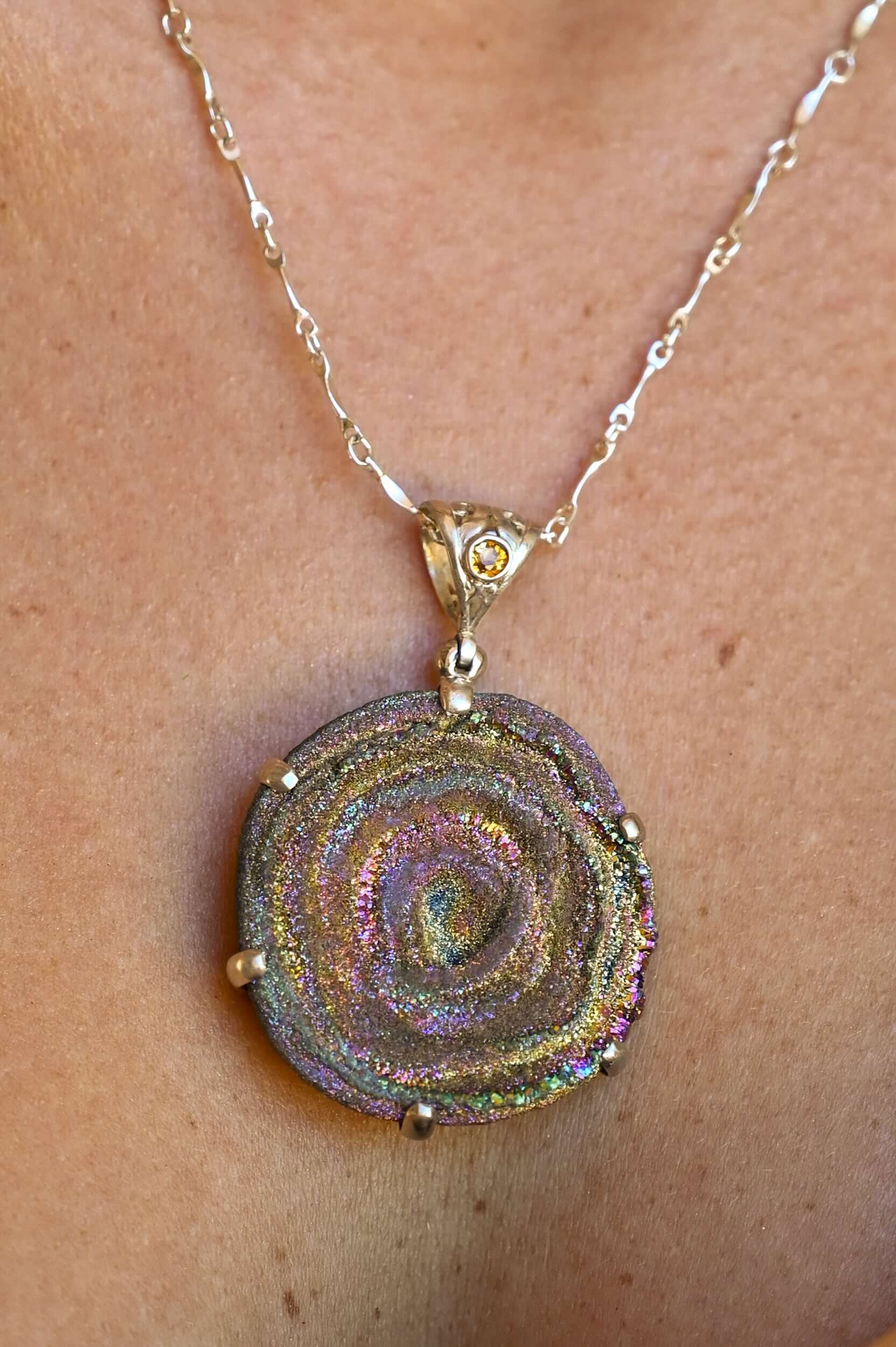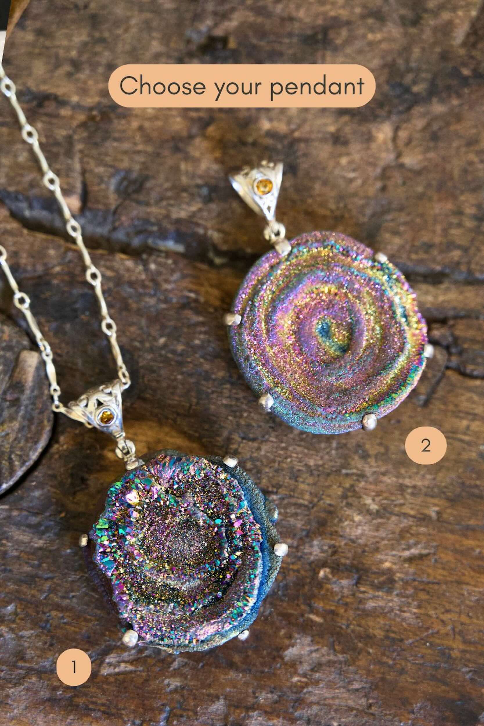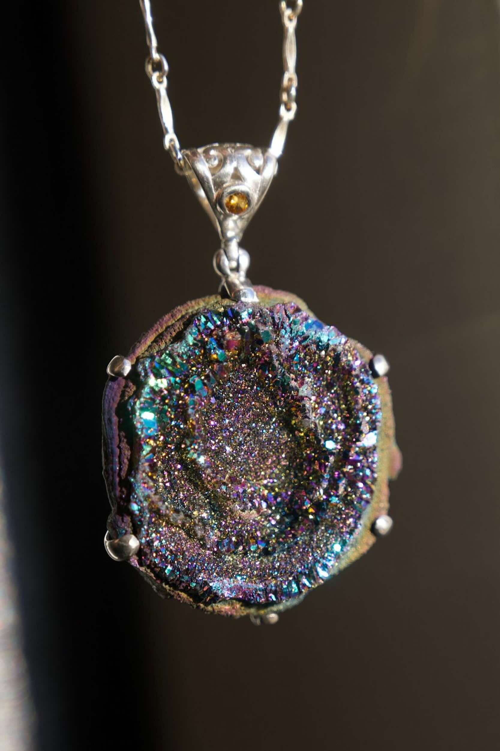 - One-of-a-kind Titanium Aura Agate Pendant set in sterling silver