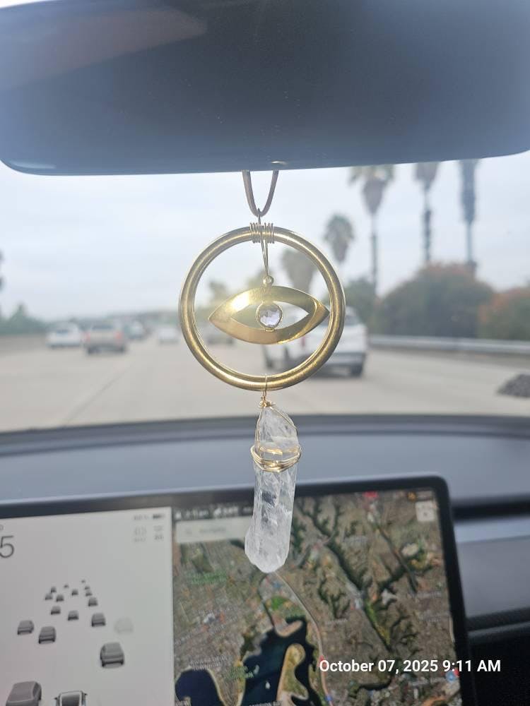 This Evil Eye protection car charm will keep only good energy in your space, warding off negative vibes. This is seriously one of the most beautiful car sun catcher charms I've ever created. The eye comes in three different gemstone options including sparkly Blue Iolite, gorgeous Green Quartz or Labradorite. The stone is faceted so it sparkles when it hits the light as it hangs from your rear view mirror. You'll be getting lots of questions about where you got this, it's so cool!
