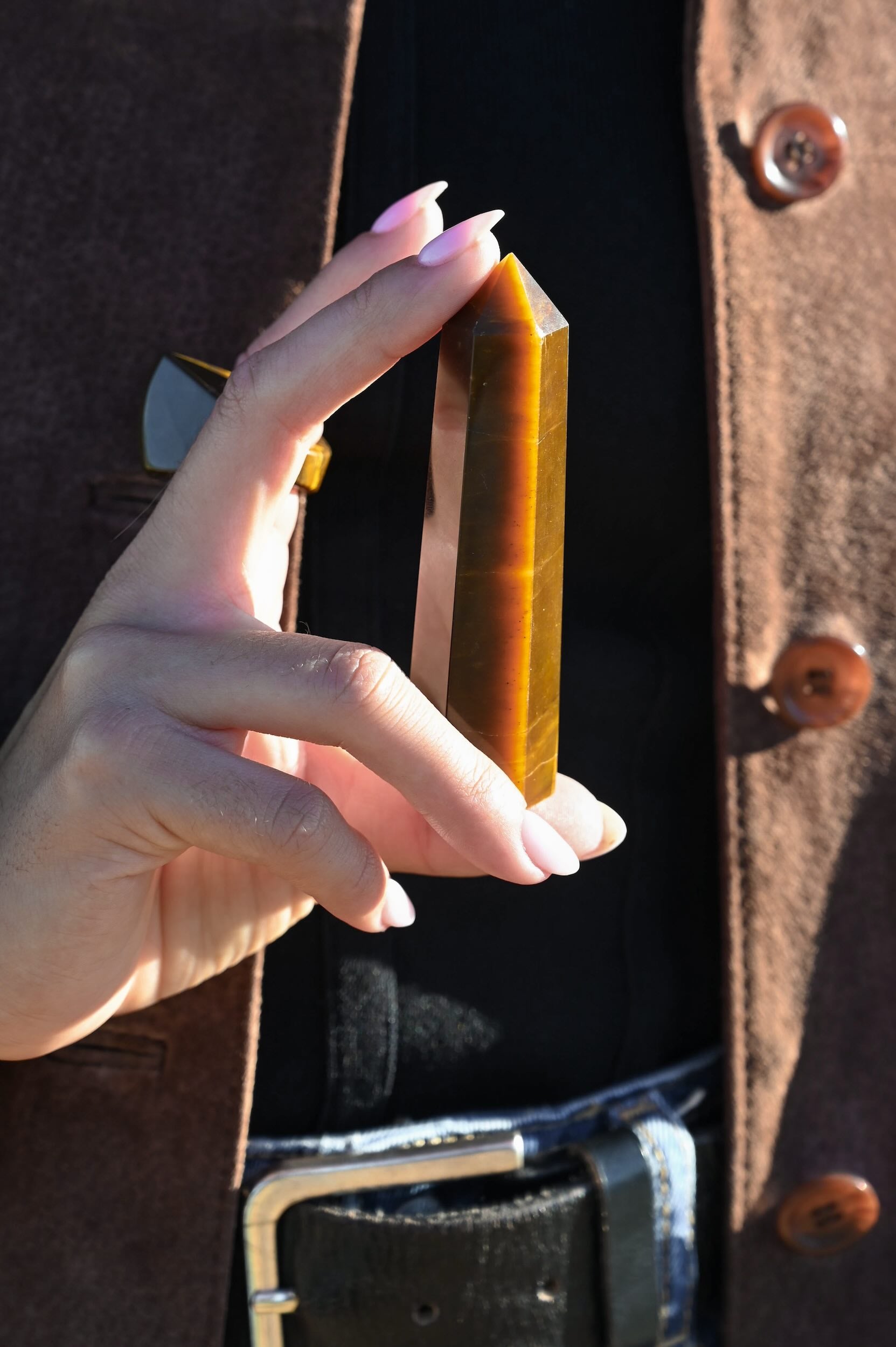 Root yourself in courage and strength. This striking Tiger’s Eye obelisk radiates fierce confidence and grounded focus, the energy of standing tall, clear, and unshaken in your truth. Place it on your desk, altar, or sacred space as a daily reminder that your power grows from the ground up.