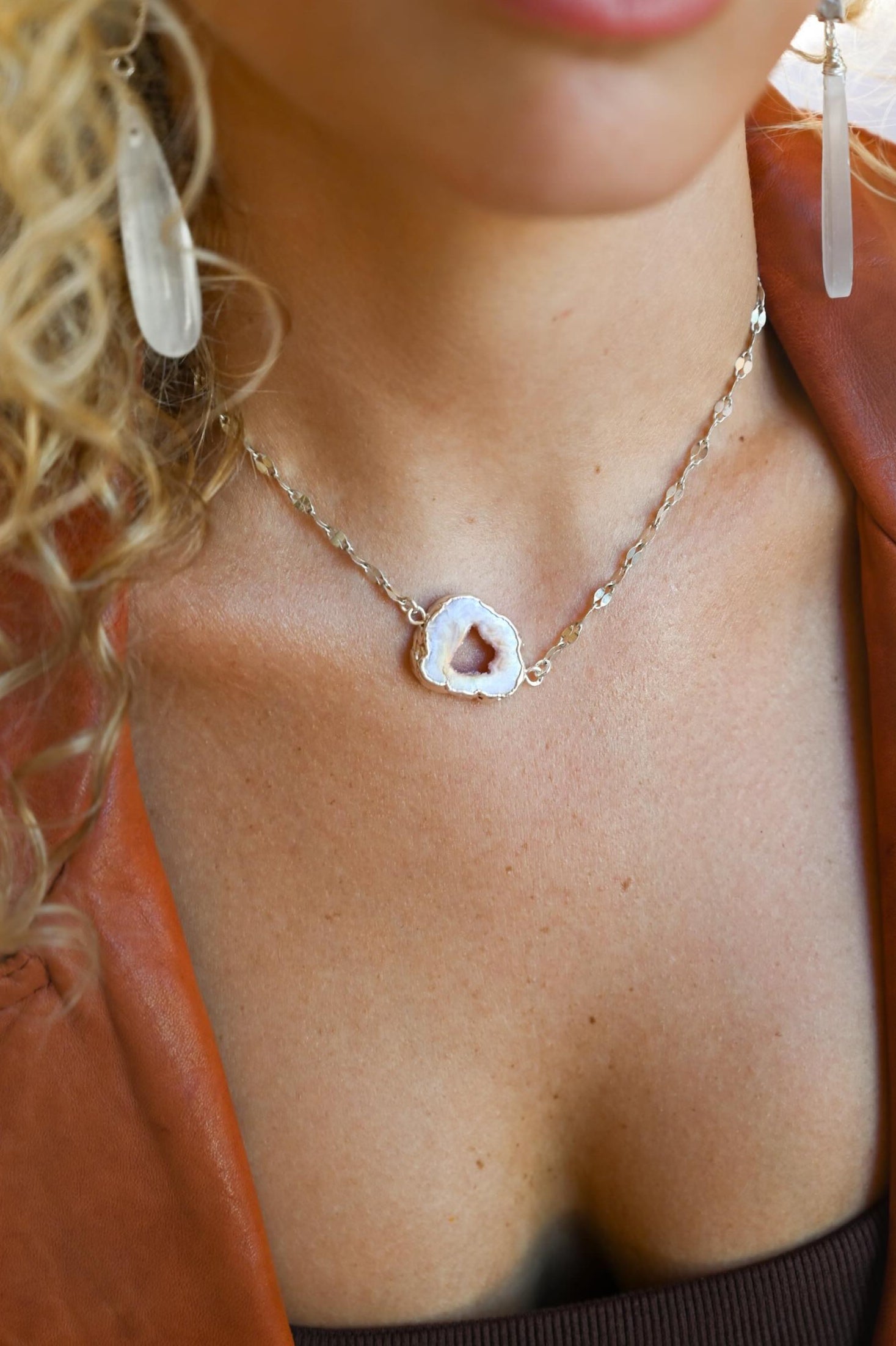 Step boldly into the unknown with the Guiding Light Necklace, your luminous shield as you walk through the mist of what lies ahead. The rainbow flash of titanium agate symbolizes the light within you, illuminating your path and protecting your spirit as you move forward into the mystic. Wear it as your talisman of courage and guidance, trusting that even when the way isn’t clear, your inner light will always lead you home.