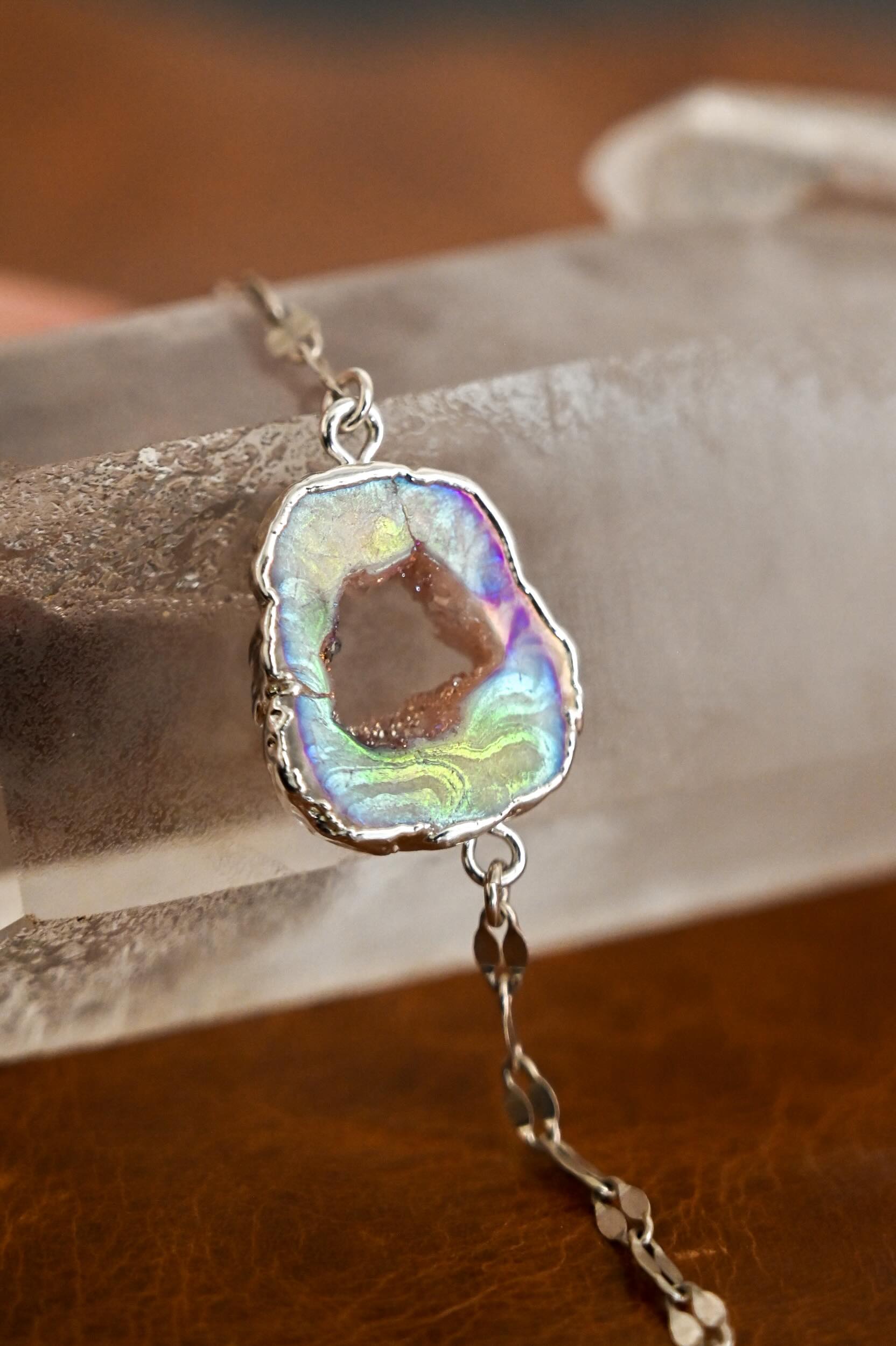 - Titanium Agate one-of-a-kind pendant (rainbow effect varies from shades of white to rainbow)