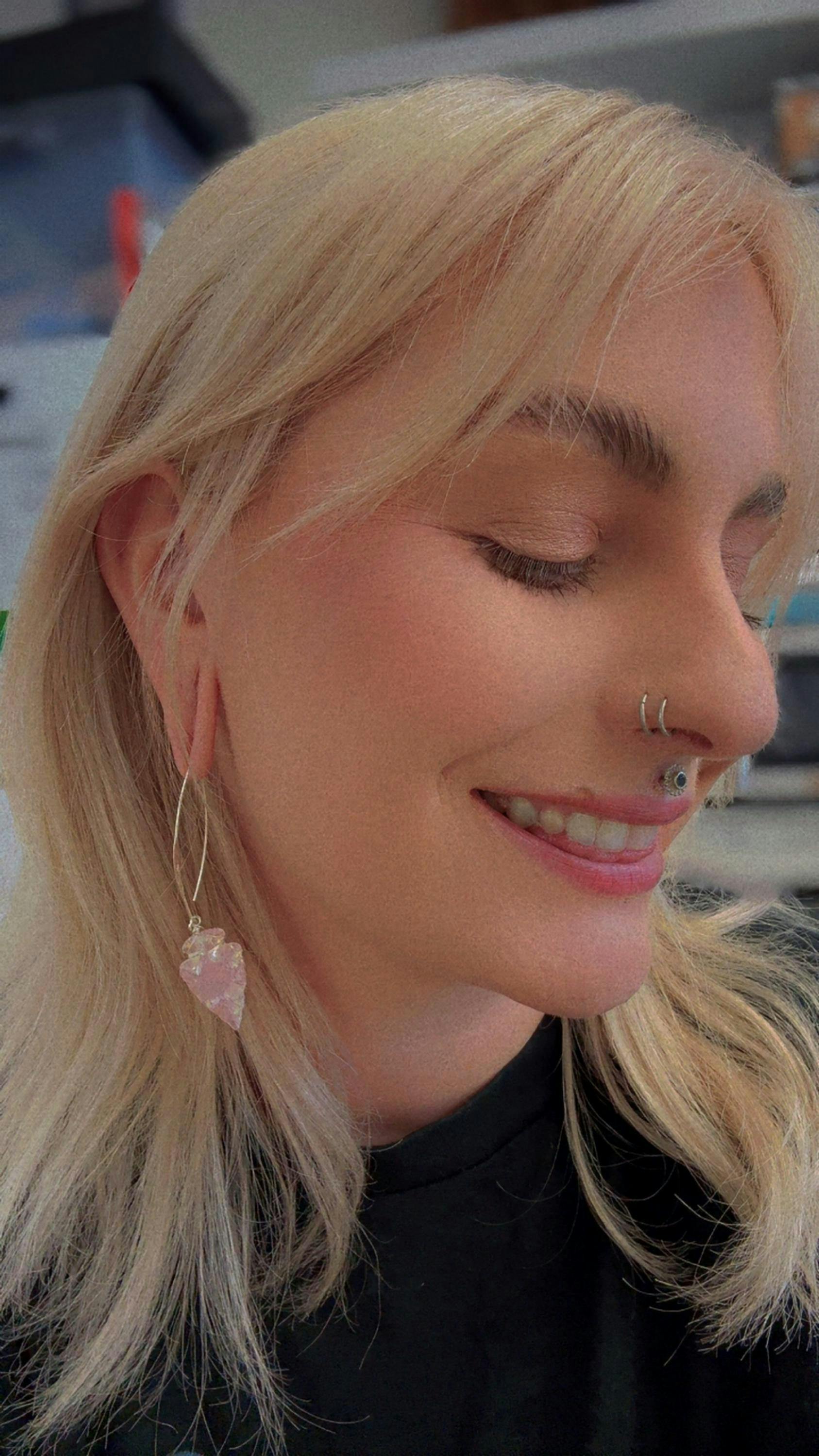 So unique, so ethereal and mystical! These Aura Rose Quartz arrowheads are the star of the show. They can be worn day to night and dressed casually or dressed up! Truly unique earrings that remind you to focus your attention on being heart-centered and loving yourself. When you do, you shine in all your brightness!