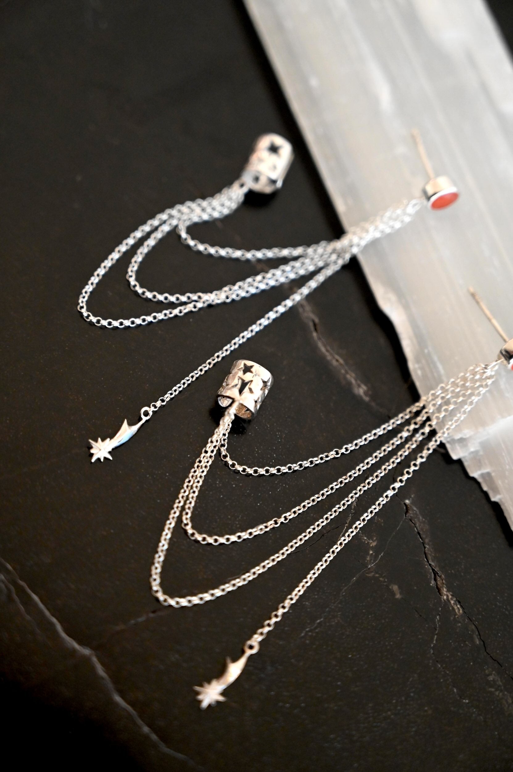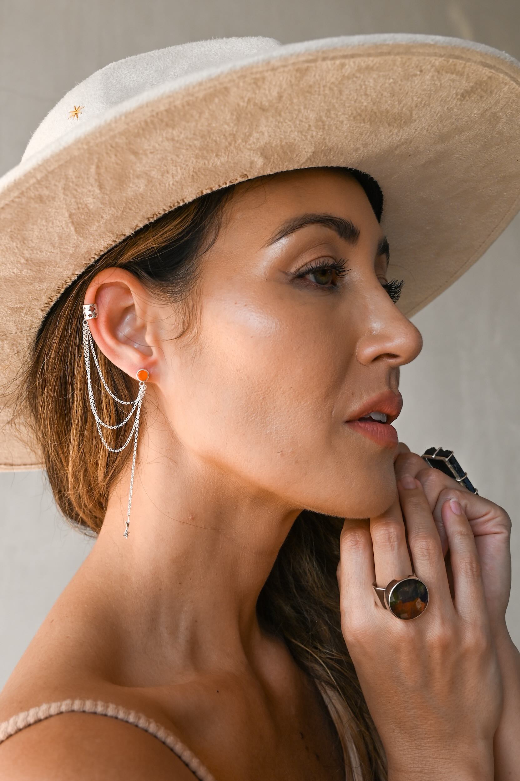 For the woman who leads with courage and heart. The Heartfire ear cuffs were created to remind you of the flame that lives within, the one that keeps burning through every season of change. Their warm carnelian glow embodies strength, passion, and grounded confidence. Slip them on and feel your fire rise steady, soft, and full of purpose.