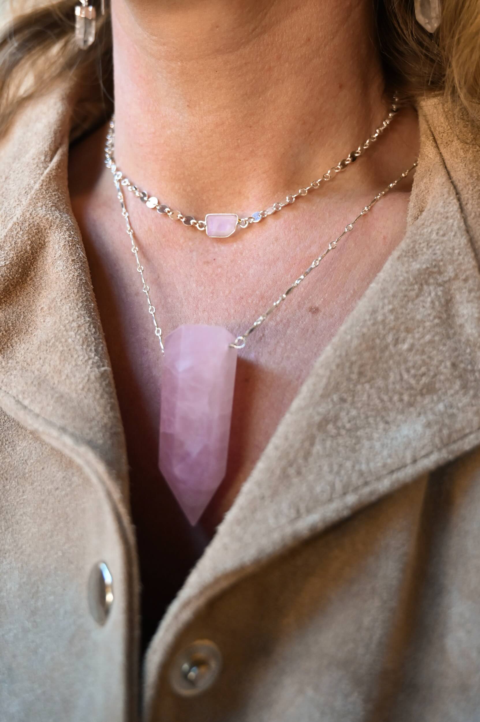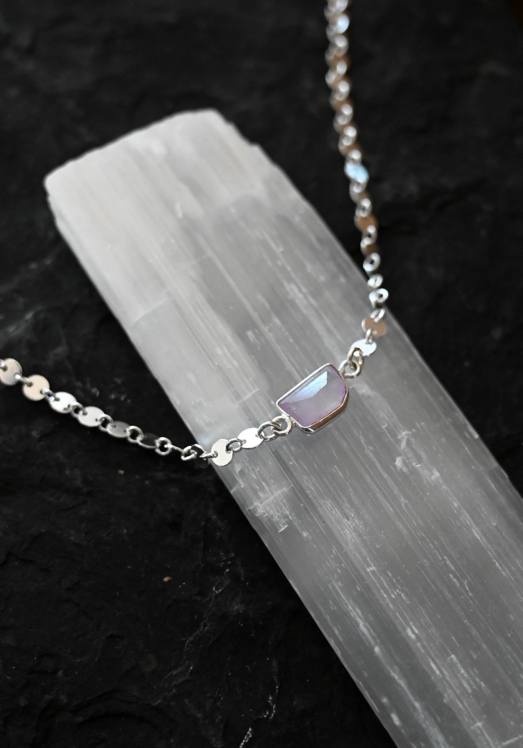 The I Choose Grace necklace is your quiet reminder to come back home. A tiny pink moonstone pendant, subtle and luminous, resting perfectly in line with a silver coin chain so it layers effortlessly and goes with everything. It’s delicate, minimal, and powerful in the way the right words are powerful when you finally say them to yourself.