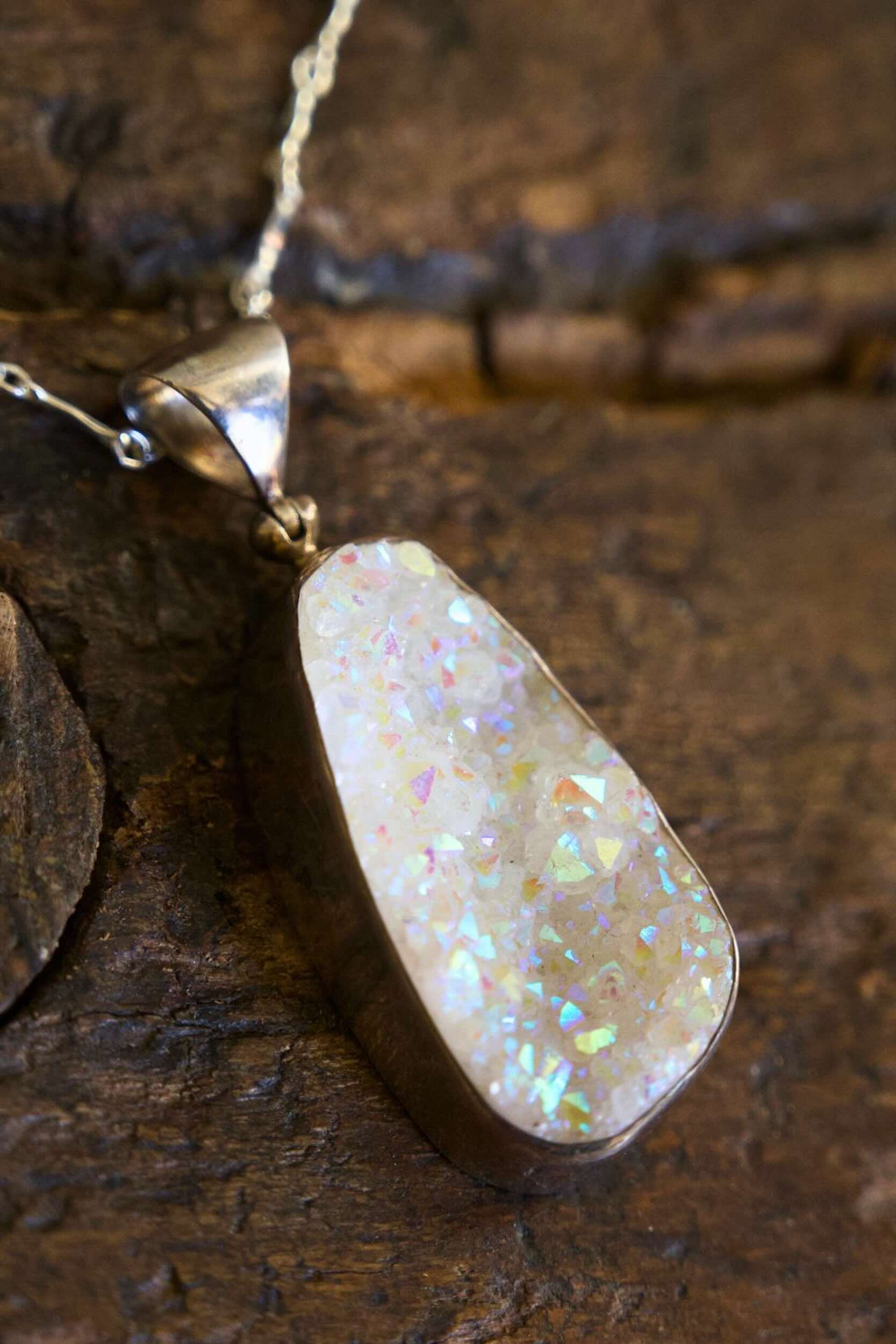 Become the Keeper of the Light with this radiant necklace, featuring a sparkling white aura agate druzy pendant that catches and reflects every flicker of brilliance around you. This piece is a reminder that you are not only guided by the light—you are the light. Wear it as your sacred symbol of strength, hope, and truth, illuminating the path for yourself and others as you move through the mystic.